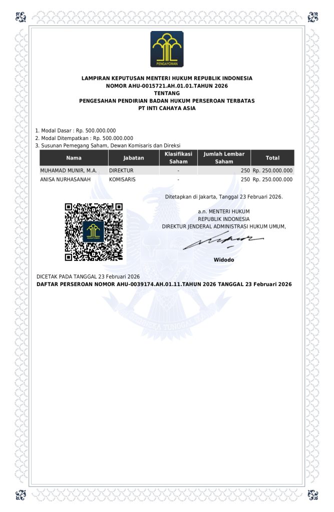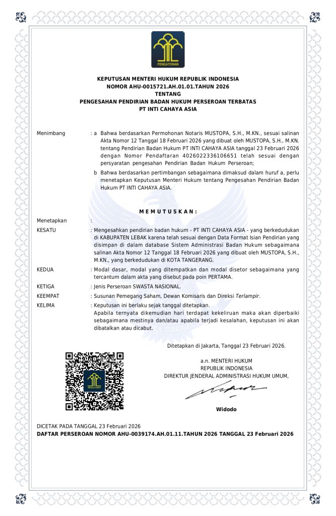 Copyright 2026 PT. Inti Cahaya Asia | Designed by Iniwebsiteku